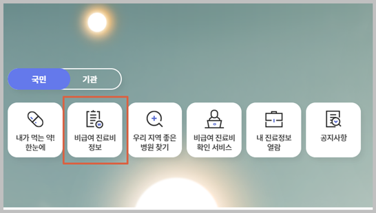 건강보험심사평가원 초기화면에서 비급여 진료비 정보를 클릭