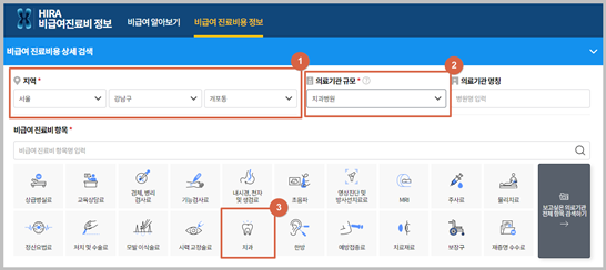 4. 이후 임플란트를 선택하면 해당 지역의 임플란트 비용 조회 가능